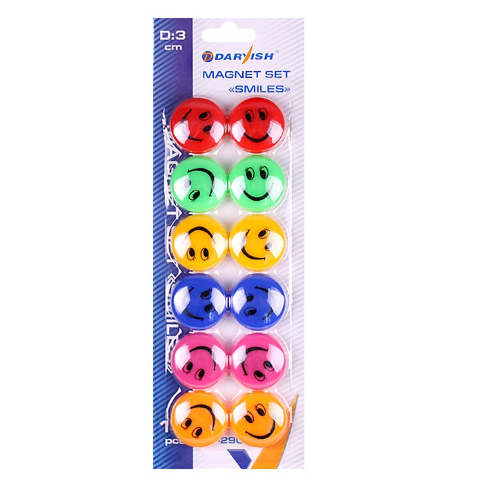 Кнопки магнитные цветные Smile 30мм,12 шт