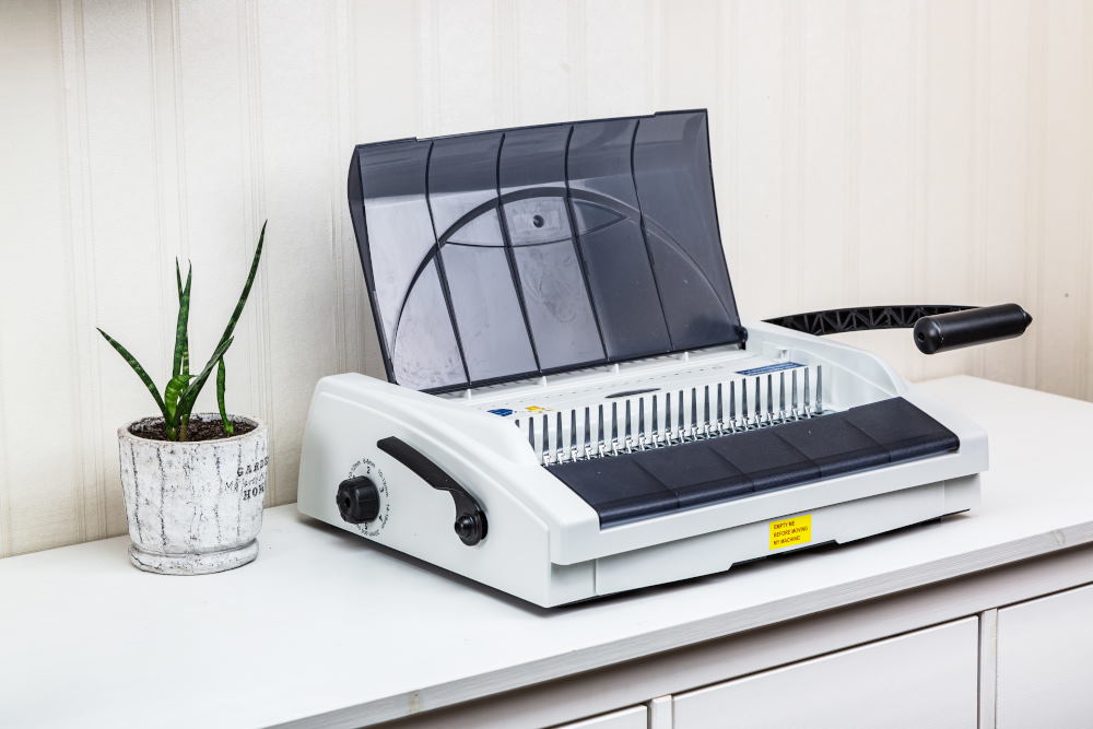 Тип: на пластик. пружину; формат: А4, А3(по узкой стороне); толщина переплета 450л.; перфорация 18л.