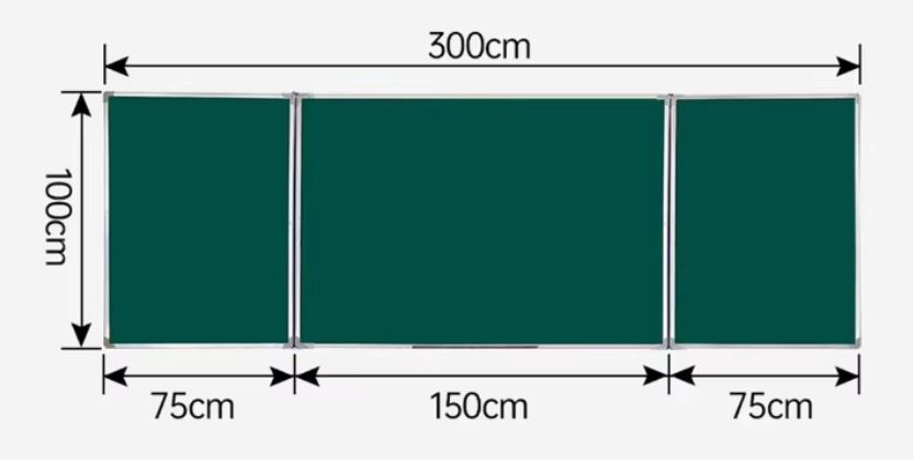 Школьная трехэлементная меловая доска размером 100х300 см предназначена для использования в школах, учебных заведениях средней и высшей степени и других образовательных учреждениях и позволяет делать надписи с помощью мела или меловых маркеров.