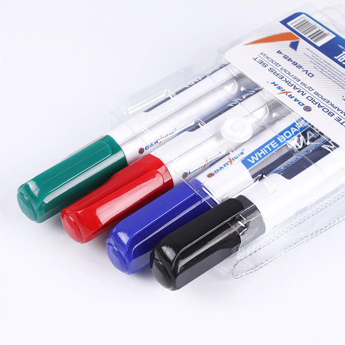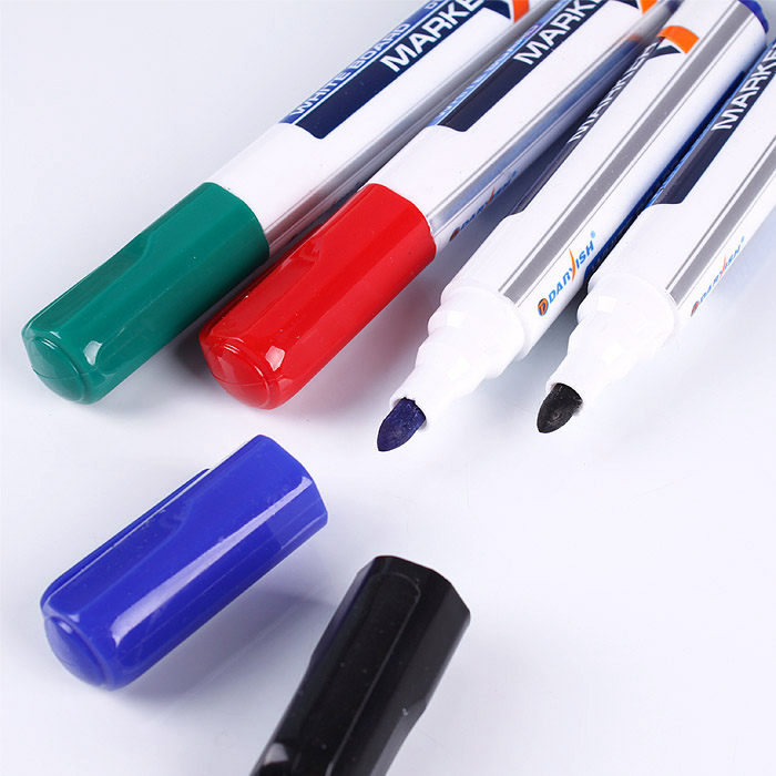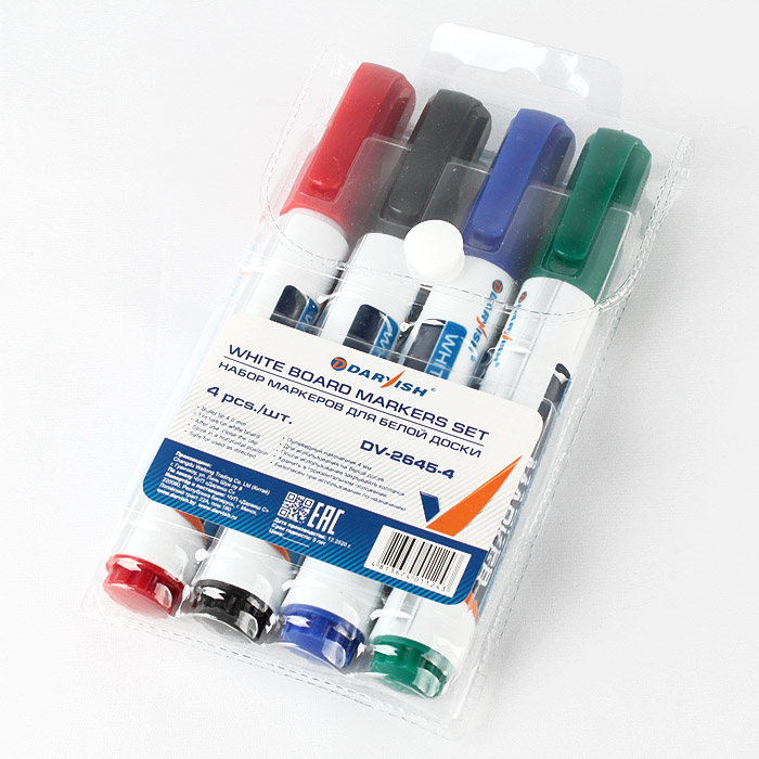 Маркеры почти без запаха, легки стираются с поверхности досок при помощи специальных щеток или губок. Толщина письма 2-4 мм. В наборе: черный, красный, синий, зеленый.