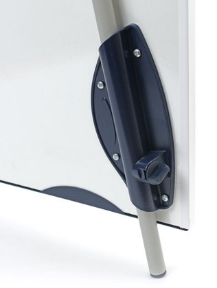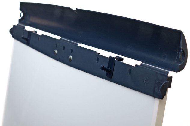 Флипчарт поставляется с передвигающимися крючками для блокнота и полочкой для маркеров