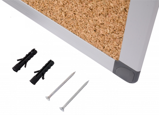 Пробковая доска в изящной тонкой рамке из алюминия с качественным пробковым покрытием производства Португалии. Изготовлена на основе SoftBoard. Предназначена для размещения информационных материалов с помощью силовых кнопок.