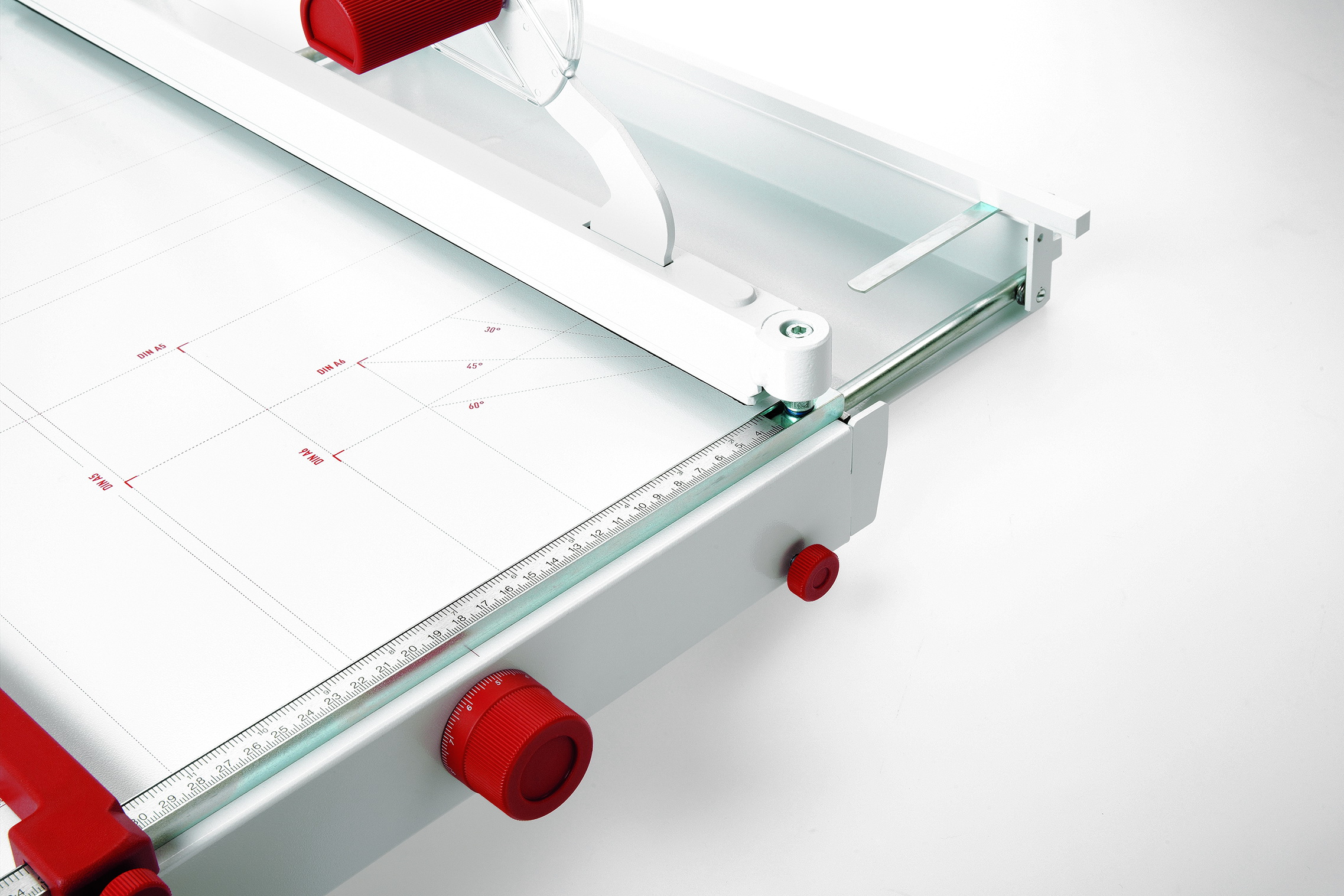 Профессиональный Сабельный резак для бумаги Ideal 1058 предлагает оперативное удобство с отличными характеристиками, как например, передний упор регулируется калиброванной ротационной ручкой с мелкоразмерной шкалой. Высококачественное лезвие выполнено из самозатачивающейся стали «Solingen». Безопасность реза обеспечивается защитой лезвия из специального материала Lexan.